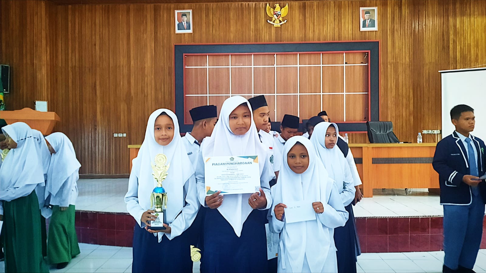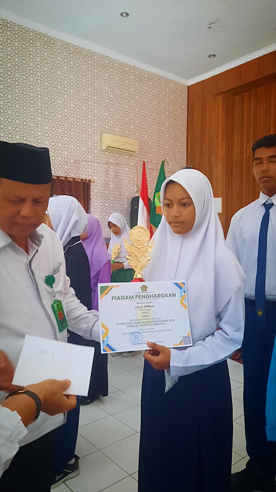 Turut serta Wakil Kepala Bidang Kesiswaan, Firdaus Roni, S.Pd.I, dan Perwakilan dari Tim Guru KSM MTsN 1 Bungo, Meli Adriani, S.Pd. mereka ikut mendampingi peserta didik MTsN 1 Bungo dalam menerima tropi ini. (SA)