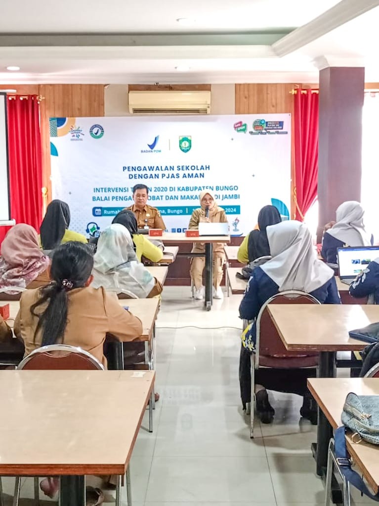 Pada kesempatan ini BPOM Jambi memfasilitasi pertemuan bersama para undangan yang merupakan perwakilan dari tiap madrasah/sekolah. Kegiatan ini bertempat di Aula Rumah Makan Sederhana Muara Bungo dan dihadiri oleh seluruh undangan yang dominan berasal dari Madrasah/Sekolah se-Kabupaten Bungo.