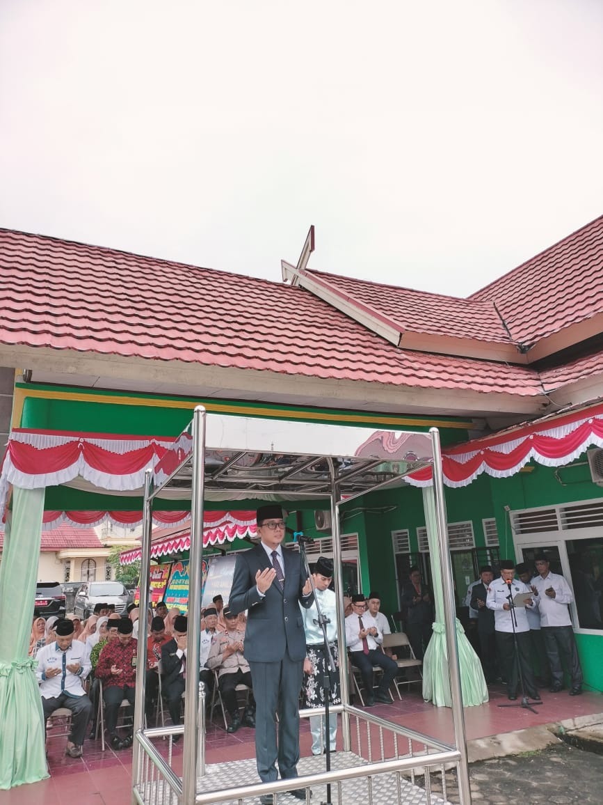 Bungo (MTsN 1 Bungo) – Kepala MTsN 1 Bungo, Khairul Fahmi, S.Pd.I bersama para Guru dan Tenaga Kependidikan MTsN 1 Bungo mengikuti upacara bendera memperingati Hari Amal Bakti (HAB) ke-79 Kementerian Agama Republik Indonesia yang bertempat di halaman utama Kantor Kemenag Kabupaten Bungo, pada Jum'at, (03/01/2025).