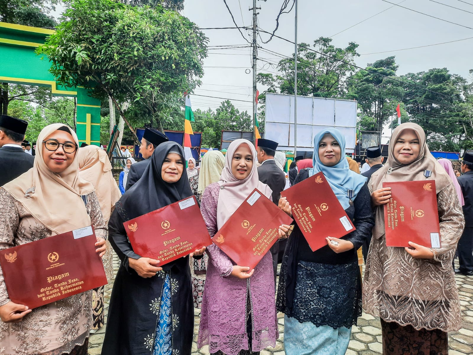 5 orang penerima Penghargaan Satyalencana Karya Satya X tahun dari MTsN 1 Bungo, diantaranya, Ibu Deswanti, S.Ag., Ibu Evi Yarnis, S.Pd.I., Ibu Meli Adriani, S.Pd., Ibu Efira Zuhria, S.Pd.I., dan Ibu Yevina Agnestriani, S.Pd.
