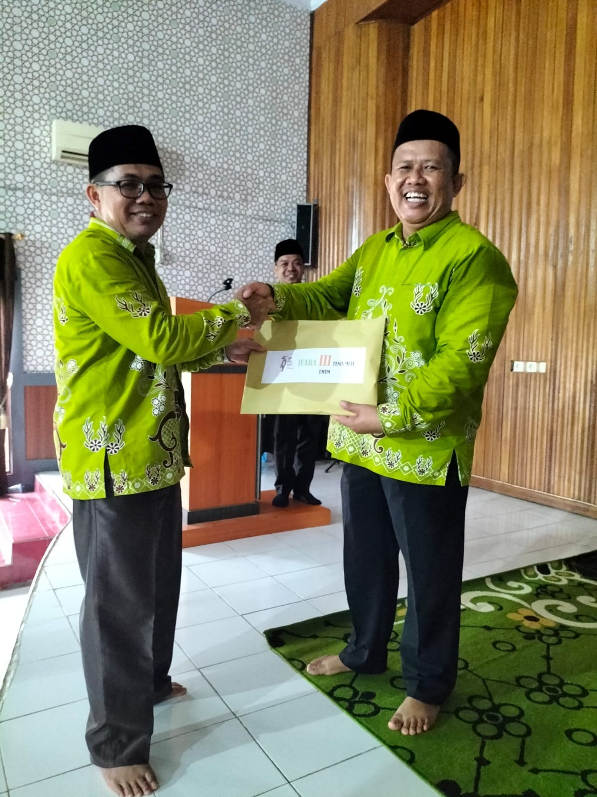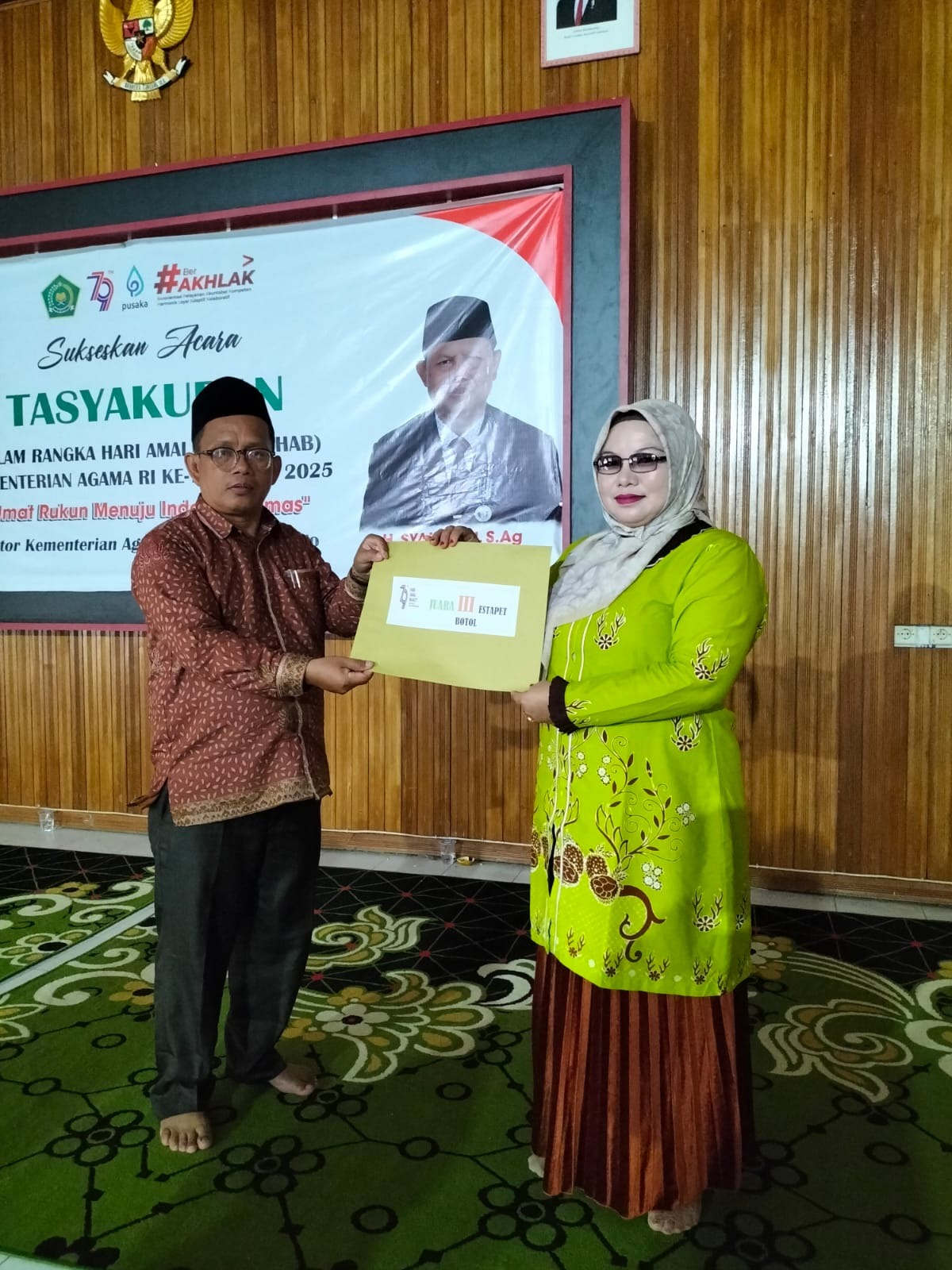 Hadiah diterima langsung oleh Kepala MTsN 1 Bungo dan Ibu Ketua DWP MTsN 1 Bungo, Bapak Khairul Fahmi, S.Pd.I dan Ibu Liza Fahmi yang diserahkan langsung oleh Kepala Seksi Madrasah, Bapak Syopriadi, S.Ag., dan Kepala Seksi Bimas Islam, Bapak H.Harlek, S.Ag.