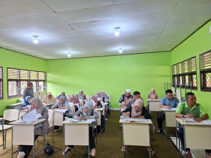 Suka Jaya (MTsN 1 Bungo) – Untuk menunjang kinerja guru MTsN 1 Bungo, pada Sabtu (13/09/25), MTsN 1 Bungo melaksanakan Uji Kompetensi Kinerja Guru. Kegiatan ini diikuti seluruh guru dari 14 Bidang Studi. Turut mendampingi, Kepala MTsN 1 Bungo, Khairul Fahmi, S.Pd.I., dan Kepala Urusan Tata Usaha MTsN 1 Bungo, Mahdalena, S.Pd.I., beserta staf. Kegiatan dimulai pada pukul 09.00 wib hingga selesai.