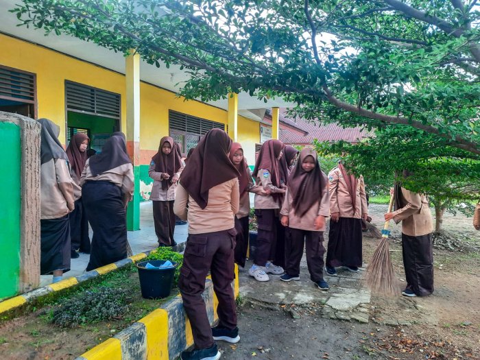 Suka Jaya (MTsN 1 Bungo) – Guru dan tenaga kependidikan (GTK) Madrasah Tsanawiyah Negeri (MTsN) 1 Bungo menunjukkan semangat luar biasa dalam mendukung program Kemenag ASRI (Aman, Sejuk, Rindang, dan Indah). Ini merupakan komitmen nyata mereka untuk mewujudkan ekotelogi di lingkungan madrasah. Program Kemenag ASRI sendiri merupakan inisiatif dari Kementerian Agama yang fokus pada peningkatan kebersihan, keindahan, dan kerapiandi lingkungan madrasah, dengan tujuan menciptakan suasana belajar yang nyaman dan kondusif bagi siswa. (18/9)