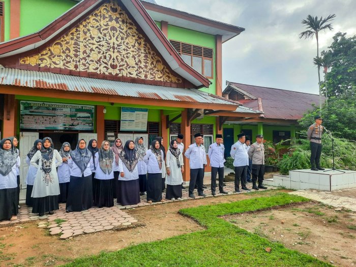 Suka Jaya (MTsN 1 Bungo) – Upacara Bendera hari ini di MTsN 1 Bungo dihadiri oleh IPTU M. Teguh Heriyanto, SH., Kapolsek Muko-Muko bathin VII yang didampingi juga oleh Bhabinkamtibmas Suka Jaya , AIPTU Alex Iskandar. Pihak Kapolsek melakukan kunjungan dan menghadiri upacara bendera di MTsN 1 Bungo Senin (22/09/25).