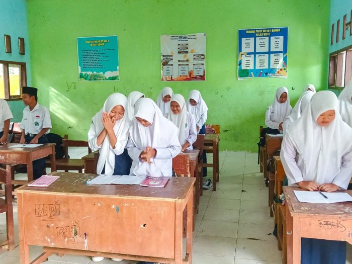 Suka Jaya (MTsN 1 Bungo) – Siswa-siswa MTsN 1 Bungo sangat senang ketika pembelajaran Bahasa Arab diawali dengan ice breaking yang menggunakan Bahasa Arab. Ice breaking ini tidak hanya membuat suasana kelas lebih santai dan menyenangkan, tetapi juga membantu siswa untuk lebih terbiasa dengan Bahasa Arab dalam konteks yang lebih interaktif dan menyenangkan. (Selasa, 23/09/25)