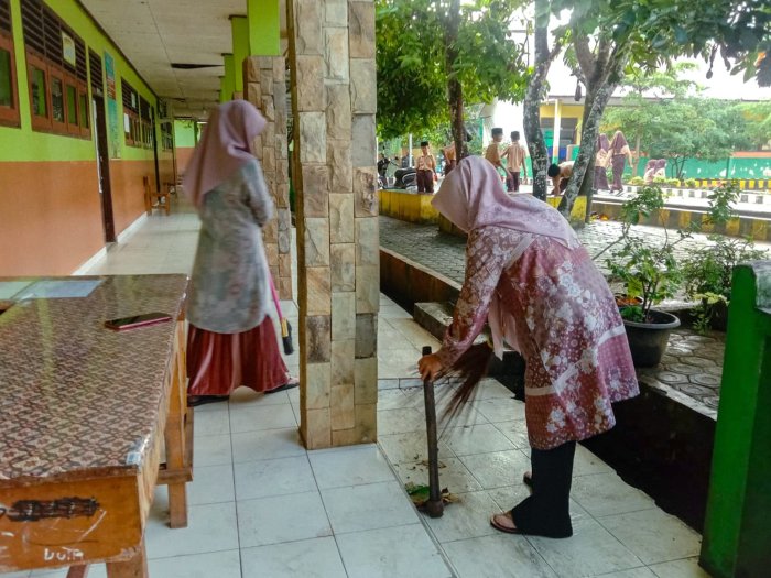 Suka Jaya (MTsN 1 Bungo) – Guru piket di MTsN 1 Bungo menunjukkan dedikasi luar biasa yang melampaui tugas rutin mereka. Selain memastikan ketertiban dan kelancaran kegiatan belajar mengajar, para guru ini juga aktif berpartisipasi dalam membersihkan lingkungan madrasah. Aksi ini menjadi contoh nyata komitmen mereka terhadap kenyamanan dan kebersihan madrasah, bukan hanya sebagai tempat mengajar, tetapi juga sebagai rumah kedua bagi siswa. (25/9)