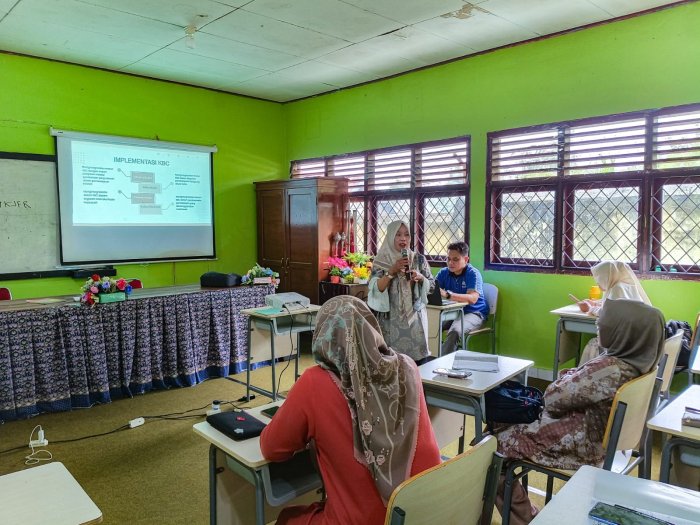 Sementara itu, Elfira Zuhria, S.Pd.I., pemateri sekaligus Tim KBC MTsN 1 Bungo menegaskan, “bahwa keberhasilan KBC sangat bergantung pada kesungguhan guru dalam mengimplementasikannya di kelas.” Ungkapnya.