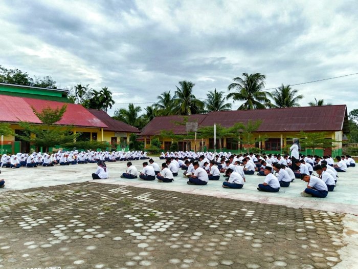 Suka Jaya (MTsN 1 Bungo) – Setiap pagi, suasana khidmat dan penuh konsentrasi menyelimuti lapangan MTsN 1 Bungo. Bukan sekadar apel rutin, kegiatan ini adalah bagian dari program pembiasaan pagi, di mana seluruh siswa dan guru berkumpul untuk membaca Surah An-Nazi'at secara bersama-sama. (30/9)