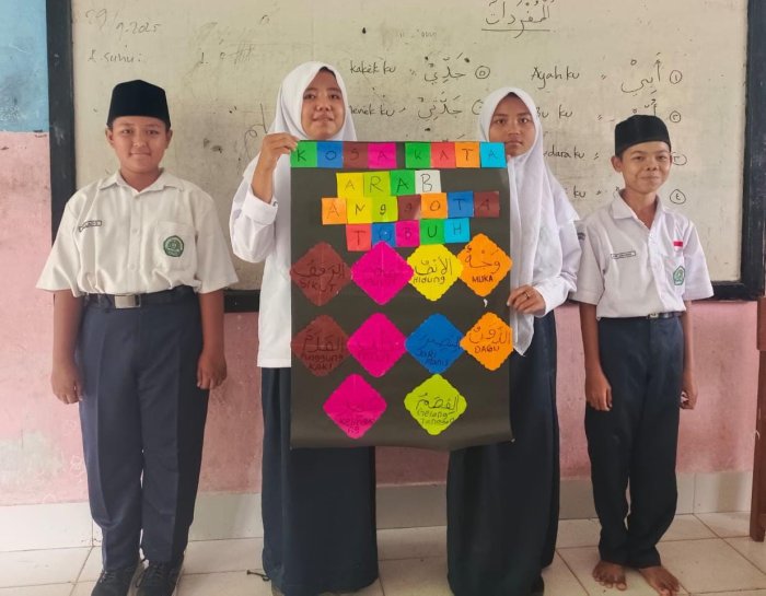 Salah satu siswa dari kelas VIIB, Vanessa, mengungkapkan antusiasmenya. "Dulu menghafal Bahasa Arab terasa berat, tapi setelah membuat kartu bergambar ini, saya jadi lebih cepat ingat. Kami juga jadi bisa belajar sambil main tebak-tebakan dengan media yang kami buat," ujarnya.