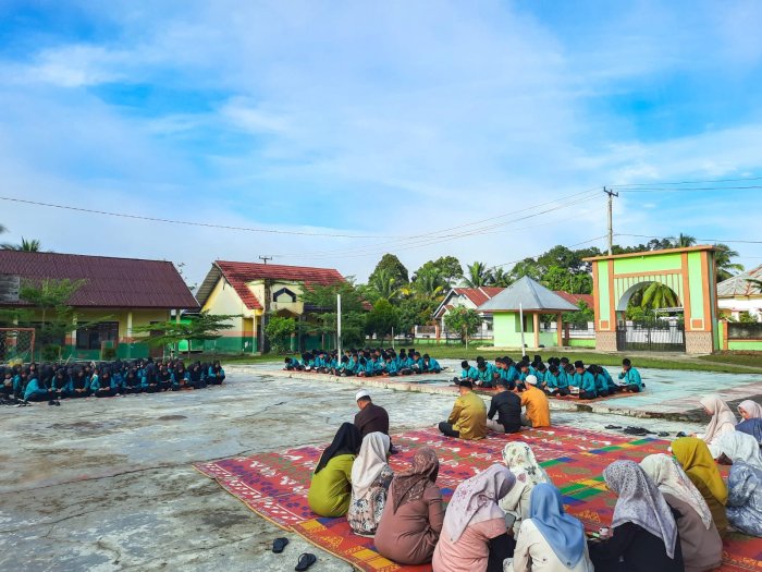 Suka Jaya (MTsN 1 Bungo) – Jumat (3/10) pagi, suasana khidmat menyelimuti halaman MTsN 1 Bungo. Seluruh peserta didik, majelis guru, dan staf tata usaha tampak berkumpul untuk melaksanakan tradisi yasinan bersama yang rutin dan sudah terjadwal. Kegiatan ini menjadi salah satu upaya madrasah dalam membentuk karakter religius serta menanamkan nilai-nilai keislaman pada peserta didik.
