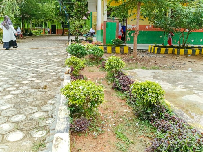 Taman-taman madrasah yang dirawat dengan baik oleh para peserta didik dan guru kini terlihat lebih hidup. Aneka ragam bunga, mulai dari kertas merah yang merekah, melati yang menawan, hingga bunga sepatu berwarna-warni, seakan berlomba menunjukkan keindahannya. Butiran-butiran sisa hujan yang menempel di kelopak bunga semakin menambah kilauannya, menciptakan pemandangan yang memanjakan mata.