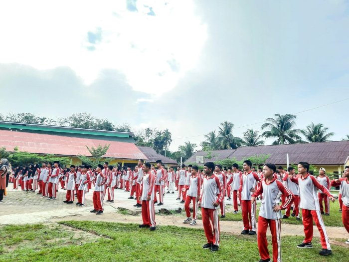 Suka Jaya (MTsN 1 Bungo) - MTsN 1 Bungo kembali melaksanakan kegiatan Senam Kesehatan Jasmani yang rutin digelar untuk menjaga kebugaran jasmani seluruh peserta didik. Kegiatan ini dipimpin langsung oleh instruktur senam sekaligus guru PJOK, Ibu Fitra Hayati, S.Pd., di halaman madrasah dengan penuh semangat. (10/10)