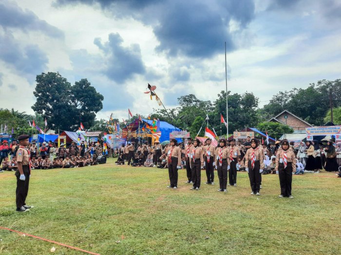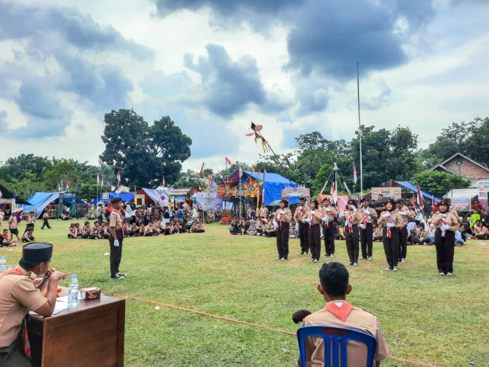 Suka Jaya (MTsN 1 Bungo) - Semangat luar biasa ditunjukkan oleh kontingen Pramuka Madtsanesa Bungo pada siang ini saat mengikuti Lomba Latihan Keterampilan Baris Berbaris (LKBB) dalam rangkaian kegiatan Jambore Ranting (Jamran) 2025 Kwarran Muko-Muko Bathin VII. Dengan penuh disiplin dan kekompakan, para anggota kontingen menampilkan gerakan demi gerakan yang memesona dan berhasil menarik perhatian para penonton maupun peserta dari sekolah lain. (13/10)
