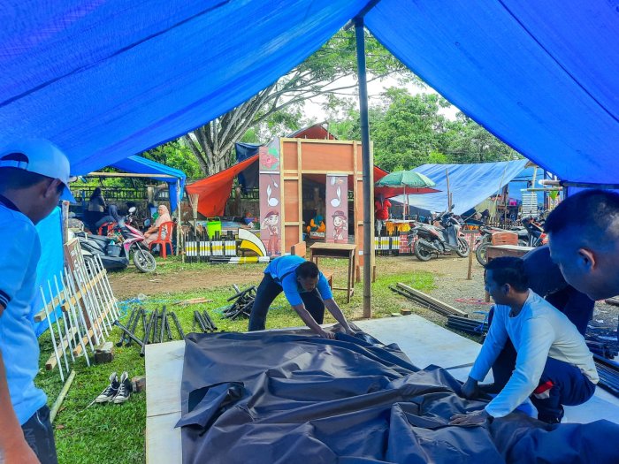 Kegiatan pembongkaran tenda ini menjadi penutup rangkaian tugas tim pendukung. Di bawah terik matahari, tidak terlihat sedikit pun rasa lelah. Para Bapak guru dan staf menunjukkan kekompakan yang luar biasa, mulai dari menggulung terpal, melipat tiang-tiang, hingga memastikan seluruh perlengkapan kembali terangkut dengan rapi.