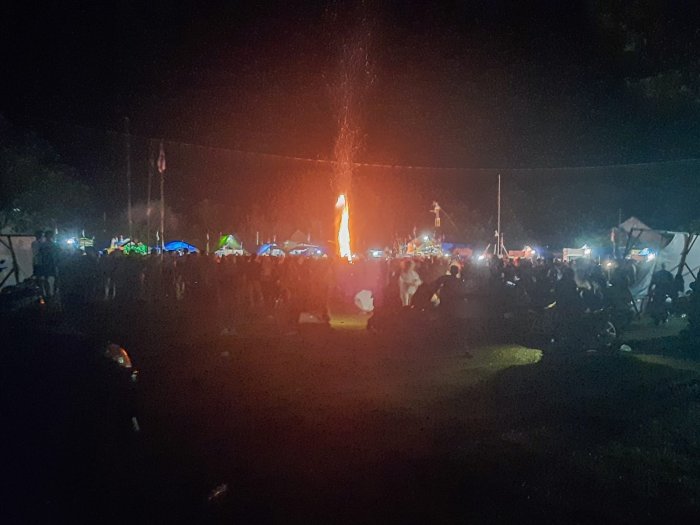 Lambang kobaran semangat Pramuka terlihat jelas saat api unggun dinyalakan. Nyala api yang menjulang tinggi menjadi simbol semangat, keberanian, dan persaudaraan antar sesama Pramuka. Suasana semakin hidup dengan berbagai penampilan kreatif dari tiap kontingen yang menampilkan yel-yel, tarian, serta pentas seni di sekitar api unggun.