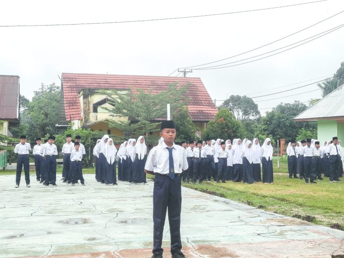 Suka Jaya (MTsN 1 Bungo) - MTsN 1 Bungo kembali melaksanakan kegiatan rutin Upacara Bendera pada Senin pagi. Upacara kali ini berlangsung khidmat dengan pembina upacara Ibu Meli Andriyani, S.Pd.I., dan petugas pelaksana dari kelas IX B. (20/10)