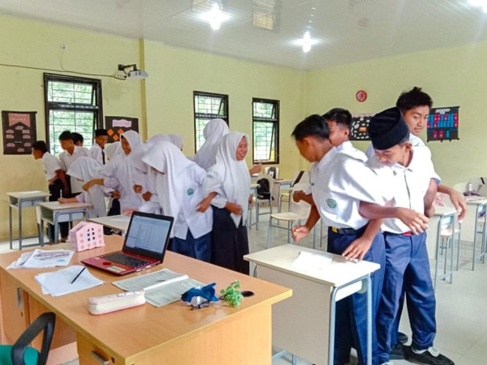 Suka Jaya (MTsN 1 Bungo) - Suasana belajar yang ceria dan penuh semangat mewarnai kegiatan di kelas 9C MTsN 1 Bungo pada sesi mata pelajaran Seni Budaya dan Prakarya (SBD). Untuk menguji pemahaman siswa dan sekaligus menciptakan pembelajaran yang menyenangkan, guru SBD memilih metode yang tidak biasa: permainan Sambung Kata. (20/10)