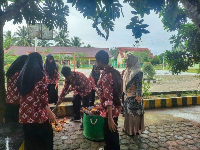 Sebelum bel tanda masuk berbunyi, para peserta didik tampak berinisiatif memungut sampah, menyapu halaman, dan menata kembali tempat duduk mereka. Salah seorang siswa kelas VIII, Maulidia, mengungkapkan pendapatnya mengenai kegiatan tersebut.