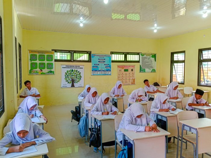 Suka Jaya (MTsN 1 Bungo) - Kegiatan Belajar Mengajar (KBM) di Madrasah Tsanawiyah Negeri (MTsN) 1 Bungo kembali bergulir dengan penuh semangat, Senin (27/10/2025). Aktivitas belajar di kelas kembali efektif setelah para siswa menikmati libur 1 hari (Minggu) singkat pasca-pembagian rapor tengah semester ganjil yang dilaksanakan pada hari Sabtu, 25 Oktober 2025 lalu.