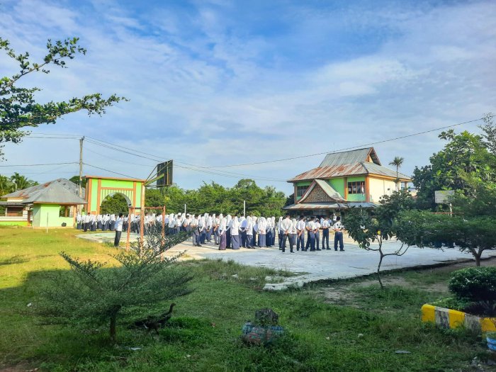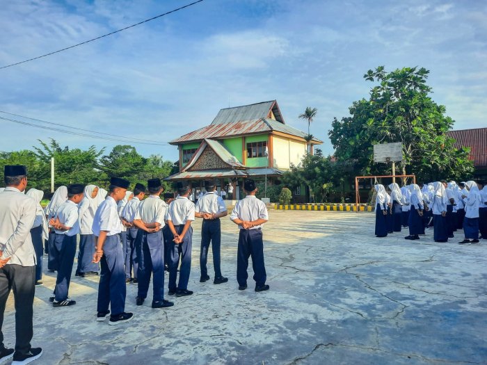 Suka Jaya (MTsN 1 Bungo) - Suasana pagi di halaman utama MTsN 1 Bungo pada Senin ini tampak begitu khidmat. Seluruh peserta didik menunjukkan sikap siap, tertib, dan disiplin dalam mengikuti pelaksanaan upacara bendera yang rutin dilaksanakan setiap awal pekan. (27/10)