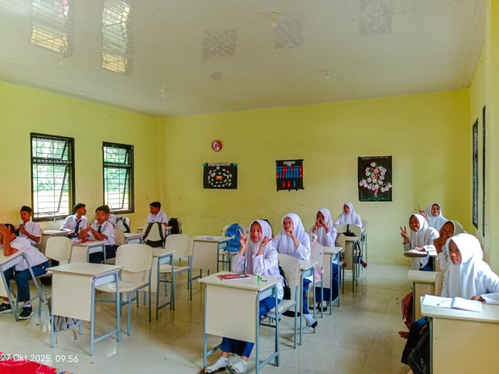 Kegiatan belajar mengajar di kelas IX B hari ini terlihat berbeda. Spidol dan papan tulis yang terpasang di depan kelas, Ibu Anita memulai pelajaran tentang sistem tekanan zat padat. secara perlahan menjelaskan tekanan dan apa saja yang termasuk zat padat sambil menuliskannya secara rinci dan terstruktur di papan tulis. Suasana kelas yang biasanya dipenuhi oleh distraksi gadget, kini berubah menjadi hening dan penuh perhatian.
