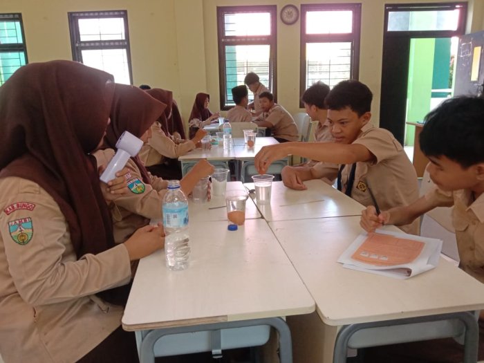 Suka Jaya (MTsN 1 Bungo) – Suasana jam pelajaran IPA di MTsN 1 Bungo tampak ramai dan penuh antusiasme pada hari ini (30/10). Para siswa Kelas IXD melaksanakan kegiatan praktikum materi Tekanan Zat Cair dengan fokus pada Hukum Archimedes. Dalam kegiatan ini, mereka membuktikan konsep mengapung, melayang, dan tenggelamnya suatu benda di dalam zat cair menggunakan alat dan bahan sederhana.