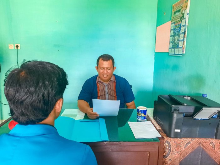 Dalam wawancara yang berlangsung di salah satu ruangan, Fadil Muhammad menggali informasi terkait manajemen pendidikan dan penerapan nilai-nilai karakter di lingkungan madrasah. Bapak Khairul Fahmi menyambut baik kedatangan mahasiswa tersebut serta memberikan penjelasan secara terbuka mengenai sistem pembinaan di MTsN 1 Bungo.