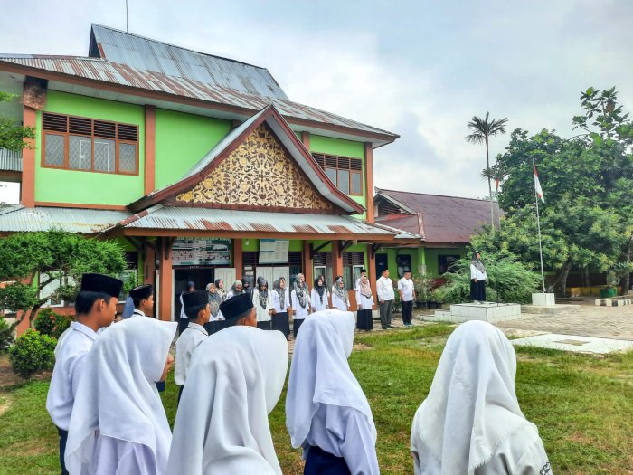 Pembacaan doa menjadi salah satu bagian penting dalam setiap upacara di MTsN 1 Bungo, sebagai bentuk rasa syukur kepada Allah SWT dan harapan agar seluruh warga madrasah senantiasa diberi kekuatan dalam menjalankan amanah belajar dan mengajar.