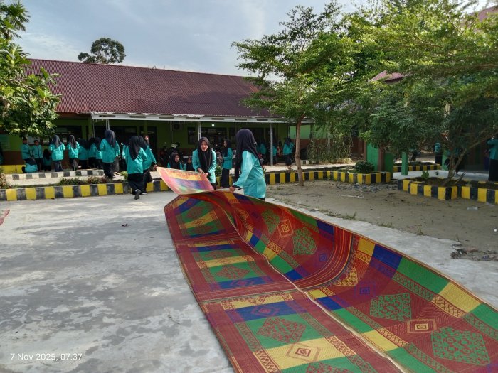 Suka Jaya (MTsN 1 Bungo) - Kegiatan rutin wirid Yasin pagi yang dilaksanakan di MTsN 1 Bungo hari ini berjalan dengan lancar dan khidmat. Setelah sesi pembacaan Yasin dan doa bersama usai, pemandangan menarik terlihat dari kesigapan anggota Organisasi Siswa Intra Madrasah (OSIM) yang secara solid bergerak cepat merapikan ratusan tikar yang digunakan oleh peserta didik. (7/11)