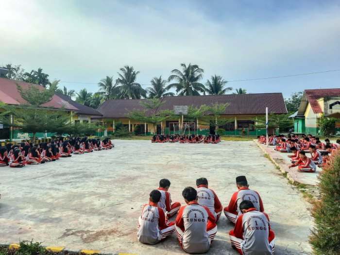 Suka Jaya (MTsN 1 Bungo) - Sabtu (8/11), MTsN 1 Bungo kembali melaksanakan kegiatan pembiasaan pagi berupa pengajian rutin dan do’a bersama, yang menjadi bagian dari program unggulan madrasah dalam membentuk karakter religius dan disiplin peserta didik.