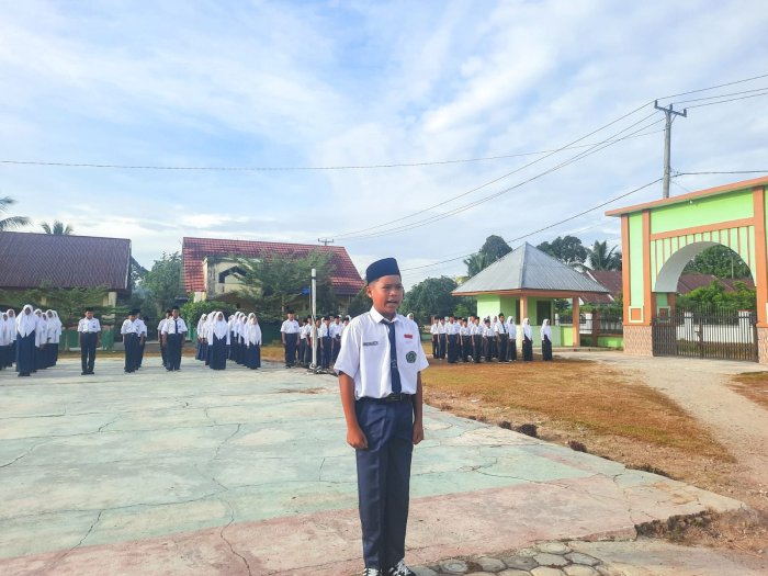 Suka Jaya (MTsN 1 Bungo) - Upacara peringatan Hari Pahlawan Nasional di MTsN 1 Bungo berlangsung khidmat dan penuh semangat kebangsaan. Dalam kegiatan yang melibatkan seluruh guru dan peserta didik tersebut, Abror, siswa kelas VIII A, tampil percaya diri sebagai pemimpin upacara dan berhasil menjalankan tugasnya dengan sangat baik. (10/11)