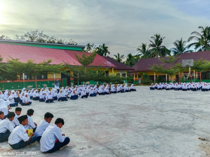 Suka Jaya (MTsN 1 Bungo) - Mengawali pekan ini, MTsN 1 Bungo menggelar kegiatan "Pembiasaan Pagi" berupa pengajian bersama yang melibatkan peran aktif para guru piket. Kegiatan rutin ini bertujuan untuk memperkuat aspek religius siswa sebelum memulai kegiatan belajar mengajar (KBM). (11/11)