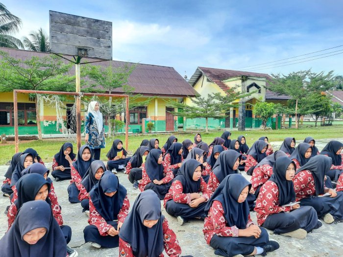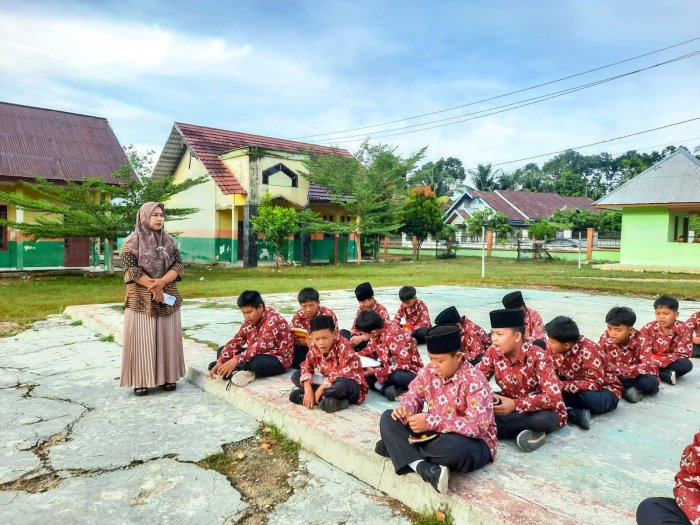 Suka Jaya (MTsN 1 Bungo) - MTsN 1 Bungo kembali menggelar kegiatan pengajian pagi pada Jumat ini sebagai upaya membiasakan peserta didik untuk memulai hari dengan nilai-nilai keagamaan. Kegiatan yang berlangsung di halaman madrasah tersebut dipimpin oleh empat orang guru piket, yaitu Ibu Satri Hidayati, S.Ag., Ibu Evi Yarnis, S.Pd.I., Ibu Jusnarti, S.AB., dan Bapak Shafwan Ananda, S.Pd. Adapun pelaksana tugas kali ini dipercayakan kepada siswa-siswi kelas 9B. (19/11)