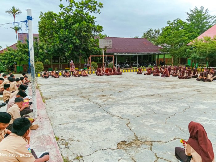 Usai pelaksanaan apel atau rangkaian pembiasaan pagi, seluruh peserta didik dan dewan guru mendengarkan arahan dari Ibu Evi Guswanti, S.Pd. Dalam kesempatan tersebut, beliau secara spesifik menyoroti hasil evaluasi dari kegiatan mengaji berjamaah yang dilaksanakan setiap pagi di lingkungan madrasah tersebut.