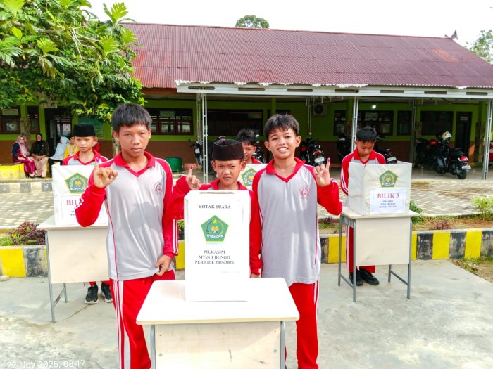 Suka Jaya (MTsN 1 Bungo) - MTsN 1 Bungo kembali menggelar pesta demokrasi melalui Pemilihan Umum OSIM (PILKASIM) untuk periode 2025/2026. Seluruh peserta didik turut serta memberikan hak suara mereka dalam pemilihan yang digelar di lingkungan madrasah, menciptakan suasana meriah dan penuh antusiasme. (22/11)