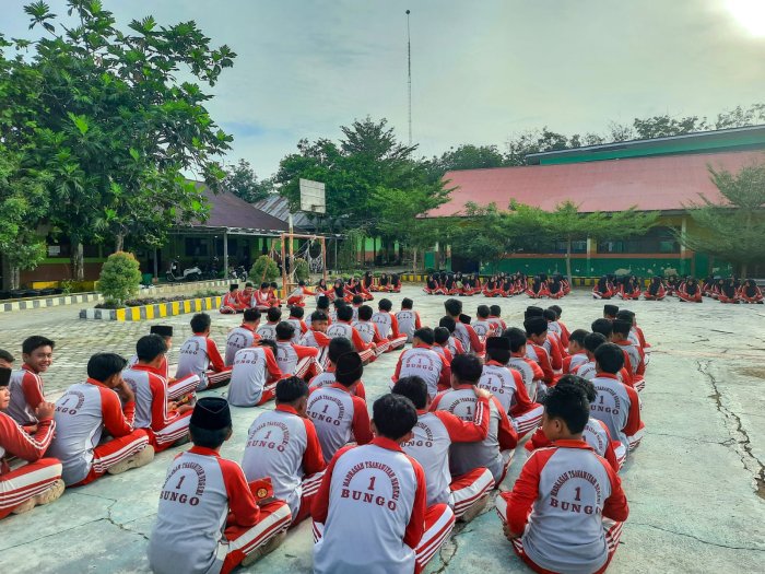 Suka Jaya (MTsN 1 Bungo) - MTsN 1 Bungo kembali melaksanakan kegiatan pengajian rutin sebagai salah satu upaya memperkuat pembinaan karakter dan spiritual peserta didik. Kegiatan yang digelar hari ini berlangsung khusyuk dan tertib, didampingi oleh tiga guru pembimbing, yaitu Bapak H. Afriwal, S.Pd.I., Ibu Hj. Deswanti, S.Ag., dan Ibu Hakimah, S.Pd.I. (22/11)