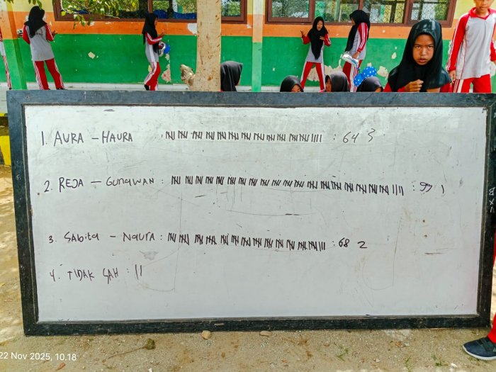 Suka Jaya (MTsN 1 Bungo) - Suasana penuh antusiasme mewarnai pelaksanaan Pemilihan Ketua dan Wakil Ketua OSIM (PILKASIM) MTsN 1 Bungo tahun 2025. Setelah melalui proses kampanye, penyampaian visi-misi, serta pemungutan suara oleh seluruh warga madrasah, akhirnya pasangan calon nomor urut 2, Reja Almuwashiel (8A) dan Ahmad Gunawan Farja (8C), resmi terpilih sebagai Ketua dan Wakil Ketua OSIM periode 2025/2026. (22/11)