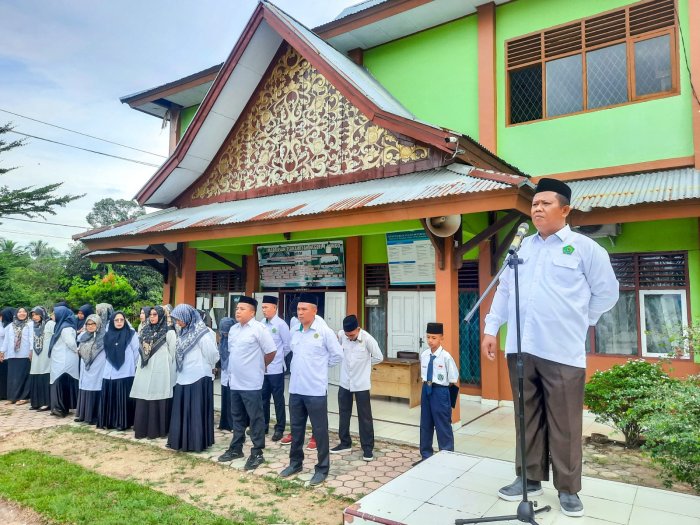 Suka Jaya (MTsN 1 Bungo) - Upacara bendera di MTsN 1 Bungo pada Senin pagi menghadirkan pesan yang menggugah semangat belajar seluruh peserta didik. Dalam amanatnya, Pembina Upacara sekaligus Kepala Madrasah, Bapak Khairul Fahmi, S.Pd.I., menyampaikan filosofi cinta yang menjadi dasar dalam Kurikulum Berbasis Cinta (KBC) yang mulai diperkenalkan di lingkungan madrasah. (24/11)