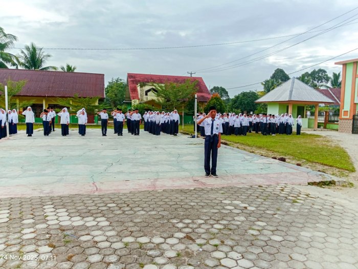 Suka Jaya (MTsN 1 Bungo) - Pelaksanaan upacara bendera di MTsN 1 Bungo pada Senin pagi berlangsung istimewa berkat penampilan cemerlang Adit, siswa kelas 8C, yang dipercaya sebagai pemimpin upacara. Dengan suara lantang, sikap tegap, dan komando yang jelas, Adit berhasil memimpin seluruh rangkaian upacara dengan sangat baik dan penuh percaya diri. (24/11)