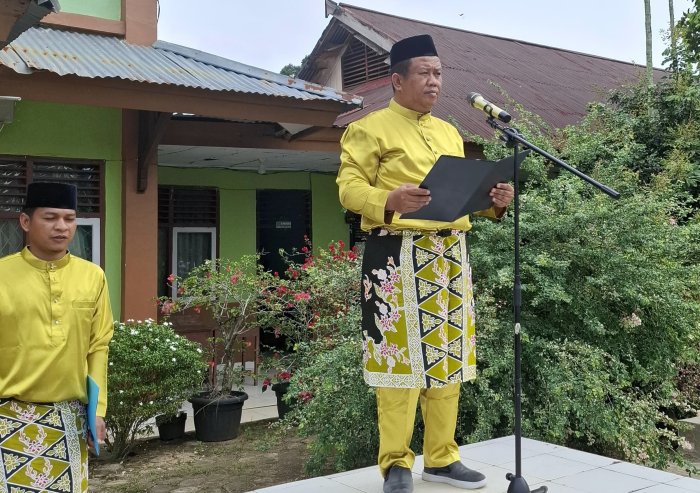 Suka Jaya (MTsN 1 Bungo) - Upacara Hari Guru Nasional (HGN) 2025 di MTsN 1 Bungo berlangsung dengan penuh khidmat dan tertib. Salah satu sosok yang memegang peran strategis dalam pelaksanaan upacara tersebut adalah Bapak Hendra Saputra, yang dipercaya sebagai ajudan pembina upacara sekaligus pembawa teks Amanat Menteri Agama Republik Indonesia. (25/11)