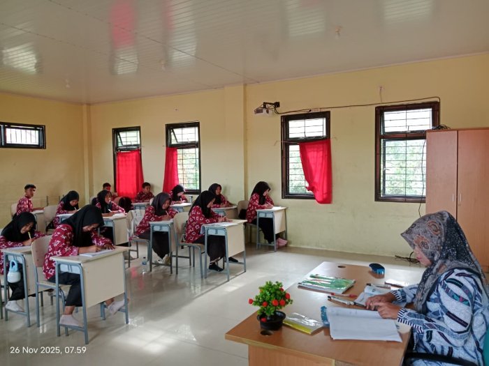 Suka Jaya (MTsN 1 Bungo) - Suasana peringatan Hari Guru Nasional (HGN) ke-80 yang penuh semarak kemarin telah usai. Hari ini, Rabu (26/11/2025), aktivitas belajar mengajar di MTsN 1 Bungo kembali normal. Para majelis guru terlihat kembali aktif di ruang kelas masing-masing, melanjutkan tugas mulia mereka mendidik para siswa.