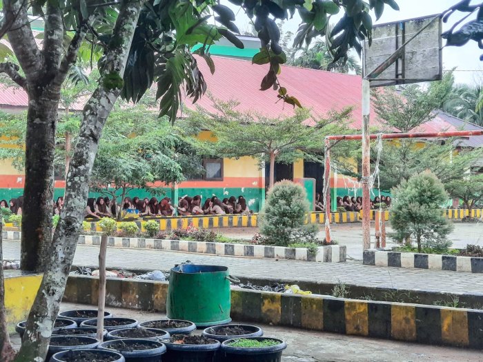 Suka Jaya (MTsN 1 Bungo) - Walau pagi ini MTsN 1 Bungo diguyur hujan, semangat peserta didik untuk melaksanakan pembiasaan pagi tetap menyala. Kegiatan rutin yang menjadi budaya positif madrasah tersebut tetap berlangsung dengan khidmat, meskipun harus dipindahkan ke selasar gedung karena kondisi cuaca. (27/11)