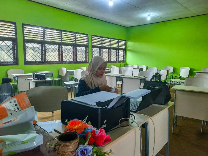 Di ruang panitia, beliau memastikan setiap instrumen soal tersusun rapi, sesuai standar, dan siap digunakan pada hari pelaksanaan. Mulai dari pengecekan format, urutan butir, hingga kelayakan cetak, semuanya dilakukan dengan cermat demi mendukung kelancaran ujian bagi seluruh peserta didik.
