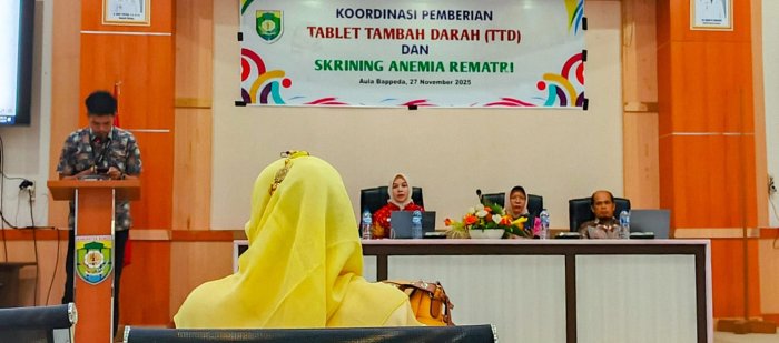 Suka Jaya (MTsN 1 Bungo) - Upaya pencegahan anemia pada remaja putri kembali diperkuat melalui kegiatan Koordinasi Pemberian Tablet Tambah Darah (TTD) dan Skrining Anemia Rematri yang dilaksanakan di Aula BAPPEDA Kabupaten Bungo. Kegiatan ini dihadiri oleh berbagai perwakilan sekolah dan madrasah, termasuk MTsN 1 Bungo yang mengutus Ibu Elfira Zuhria, S.Pd.I. (27/11)