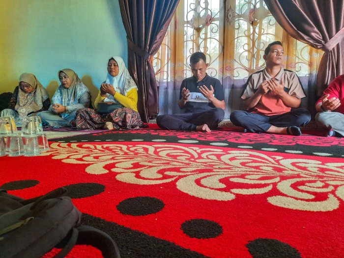 Acara kemudian dilanjutkan dengan pembacaan tahlil yang dipimpin oleh Pak Ridwan, S.Pd.I., dan ditutup dengan doa bersama yang dipimpin oleh Bapak H. Afriwal, S.Pd.I. Suasana haru menyelimuti kegiatan tersebut, namun terasa pula keteguhan dan kehangatan dukungan dari seluruh rekan kerja.