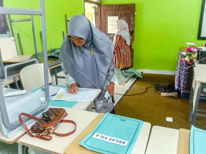 Antrean ini bukan sekadar rutinitas, tetapi mencerminkan komitmen kuat para guru. Mereka bersemangat untuk segera memasuki kelas guna menciptakan suasana ujian yang kondusif dan menjamin ketertiban.