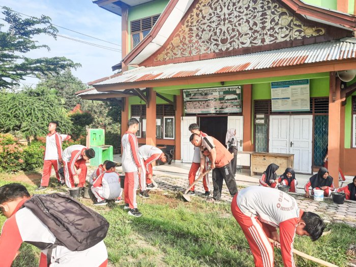 Suka Jaya (MTsN 1 Bungo) - Dalam rangka menyambut semester genap Tahun Ajaran 2025/2026, MTsN 1 Bungo melaksanakan kegiatan gotong royong di lingkungan madrasah. Kegiatan ini diikuti oleh seluruh peserta didik, majelis guru, serta tenaga kependidikan sebagai wujud kebersamaan dan kepedulian terhadap kebersihan serta keindahan madrasah. (7/1)