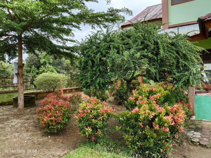 Suka Jaya (MTsN 1 Bungo) - Keasrian lingkungan MTsN 1 Bungo semakin tampak jelas saat musim hujan tiba. Curah hujan yang cukup tinggi memberikan suasana sejuk dan asri di seluruh area madrasah. Pepohonan yang rindang tampak semakin hijau, sementara taman-taman madrasah terawat dengan baik dan dipenuhi tanaman hias yang segar. (10/1)