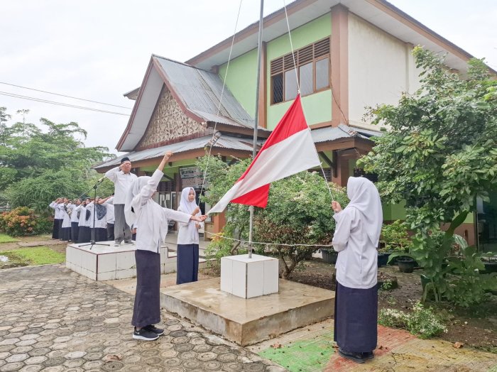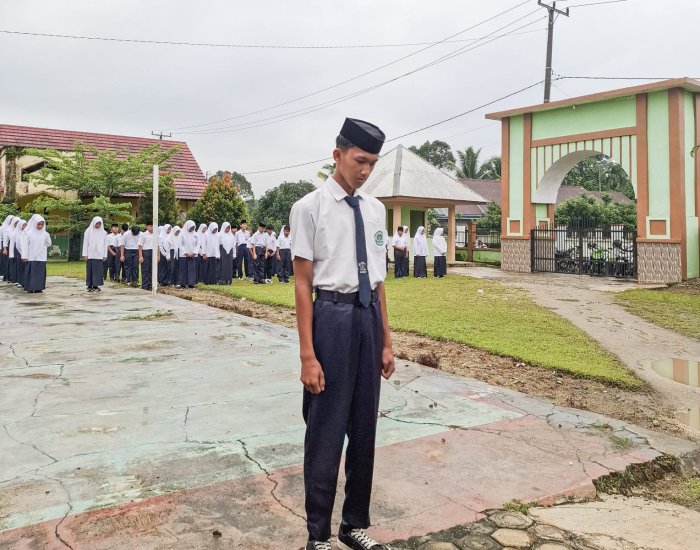 Suka Jaya (MTsN 1 Bungo) - MTsN 1 Bungo kembali melaksanakan upacara bendera rutin yang berlangsung dengan khidmat di halaman madrasah. Kegiatan ini diikuti oleh seluruh peserta didik, Guru, serta Tenaga Kependidikan sebagai wujud pembinaan karakter, kedisiplinan, dan nasionalisme di lingkungan madrasah. (12/1)