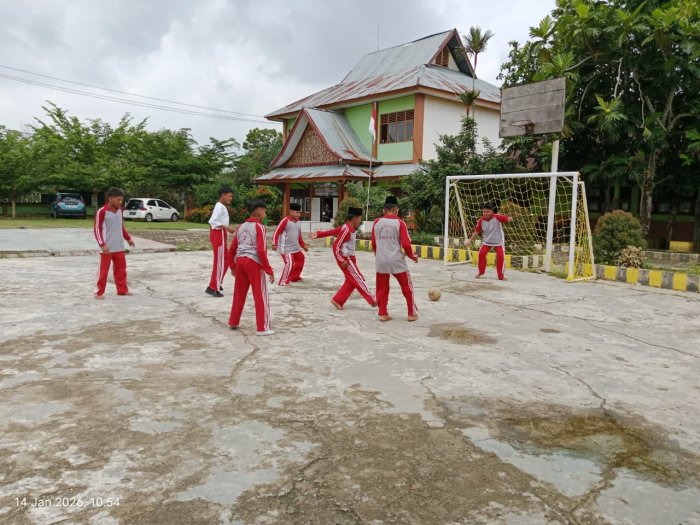 Suka Jaya (MTsN 1 Bungo) - Suasana ceria tampak jelas di lapangan MTsN 1 Bungo saat pelajaran Pendidikan Jasmani, Olahraga, dan Kesehatan (PJOK) berlangsung. Para siswa mengikuti kegiatan olahraga dengan penuh semangat melalui permainan futsal dan bola voli, yang dilaksanakan pada jam pelajaran PJOK. (14/1)